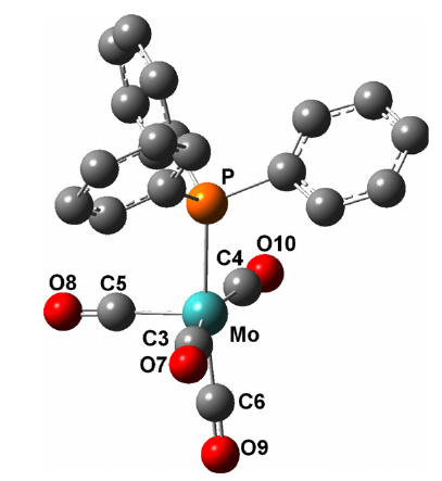 [M(CO)4PPh3]•− (M = Mo, W) were trapped at 77 K in X-irradiated single crystals of M(CO)5PPh3 and studied by EPR. Structures of [M(CO)4PPh3]•− (M = Cr, Mo, W) were optimized by DFT; predicted g and 31P-hyperfine tensors agree with experiments for M = Mo, W. The anions adopt a slightly distorted pyramidal structure with PPh3 in basal position and the spin mostly delocalized in a metal-dz2 orbital and carbon-pz orbitals of carbonyls. The EPR tensors are slightly modified by annealing, they suggest that new constraints in the matrix distort the structure of [M(CO)4PPh3]•− (M = Cr, Mo, W). | ||||||||