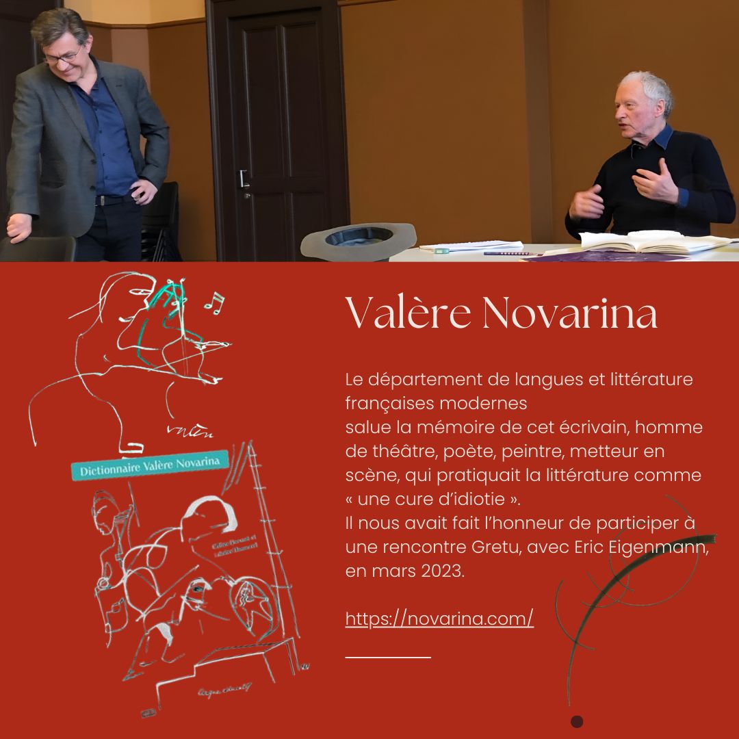 Le Département salue la mémoire de Valère Novarina, écrivain, homme de théâtre, poète, peintre, metteur en scène, qui pratiquait la littérature comme « une cure d’idiotie ».