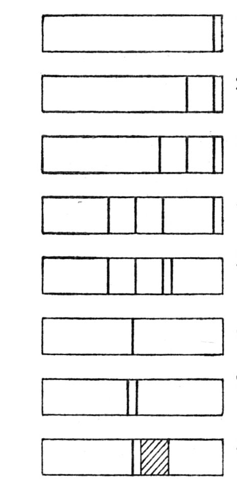 Nous nâavons pas fait de nouvelles expĂ©riences en ce qui concerne ces faits connus (il suffit pour les vĂ©rifier de comparer, par exemple, un petit mouvement oscillatoire perçu en fovĂ©a ou en pĂ©riphĂ©rie), mais nous sommes en possession des observations faites Ă propos du tabl. 8 et qui nous seront utiles : lâallongement systĂ©matique des mobiles (perçus comme des traits), dâautant plus grand quâils sont proches du point de fixation et dâautant diminuĂ© quâils sont perçus en pĂ©riphĂ©rie. Le phĂ©nomĂšne est qualitativement le mĂȘme Ă la lumiĂšre et lorsque les mobiles se dĂ©tachent en lumineux sur un fond obscur, mais lâeffet est plus fort dans lâobscuritĂ©.