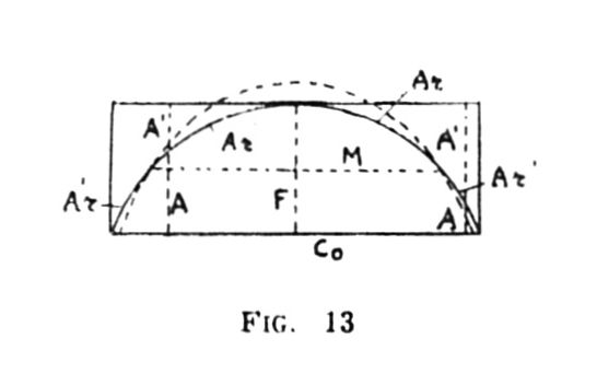 On voit alors que le maximum thĂ©orique correspond approximativement au maximum expĂ©rimental situĂ© (tabl. 27) entre 10 et 15, mais en nĂ©gligeant le facteur constituĂ© par la longueur des hachures comparĂ©es Ă B, qui donnerait naturellement lieu Ă dâautres variations (sur le mode des erreurs du rectangle).