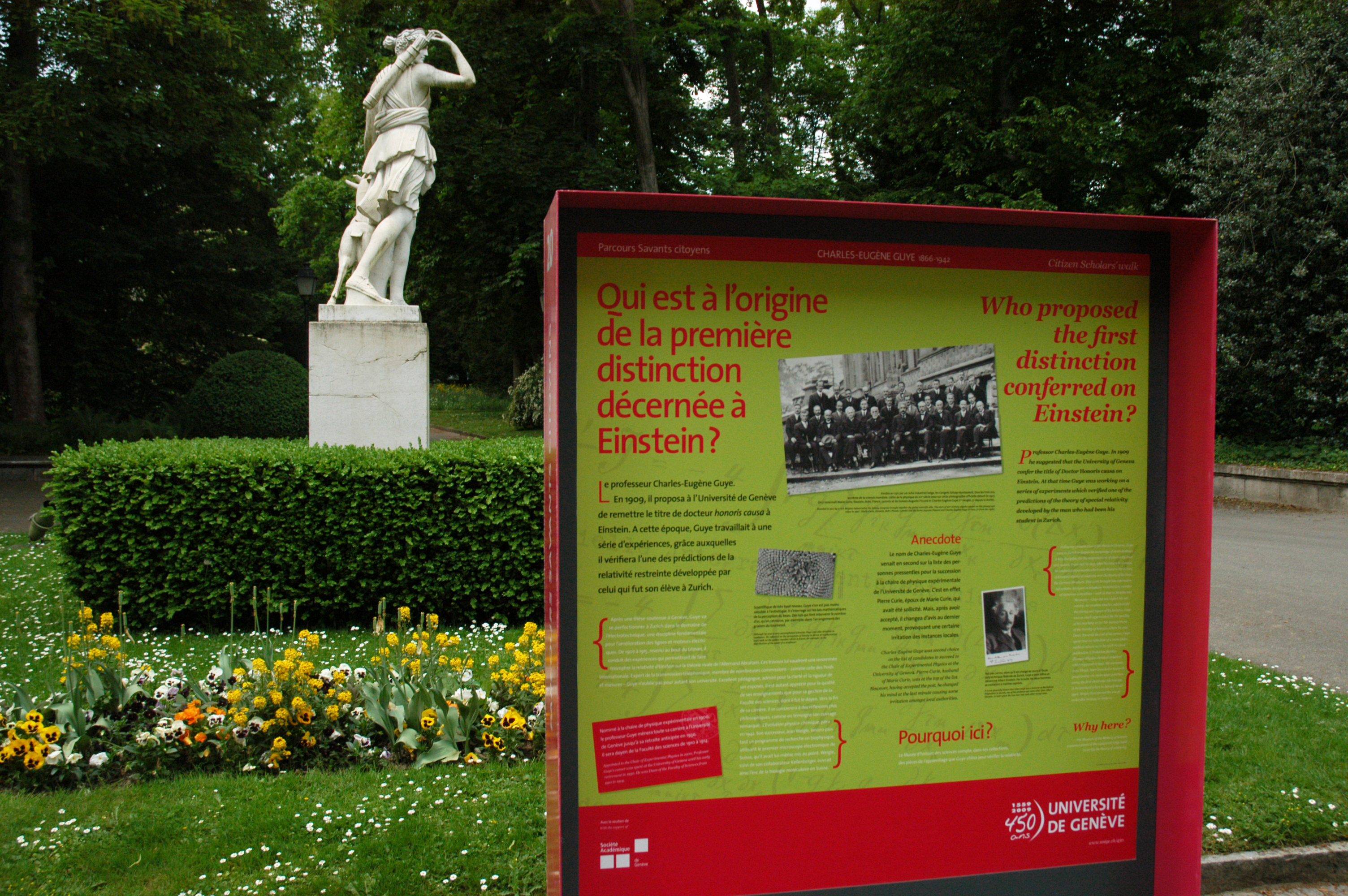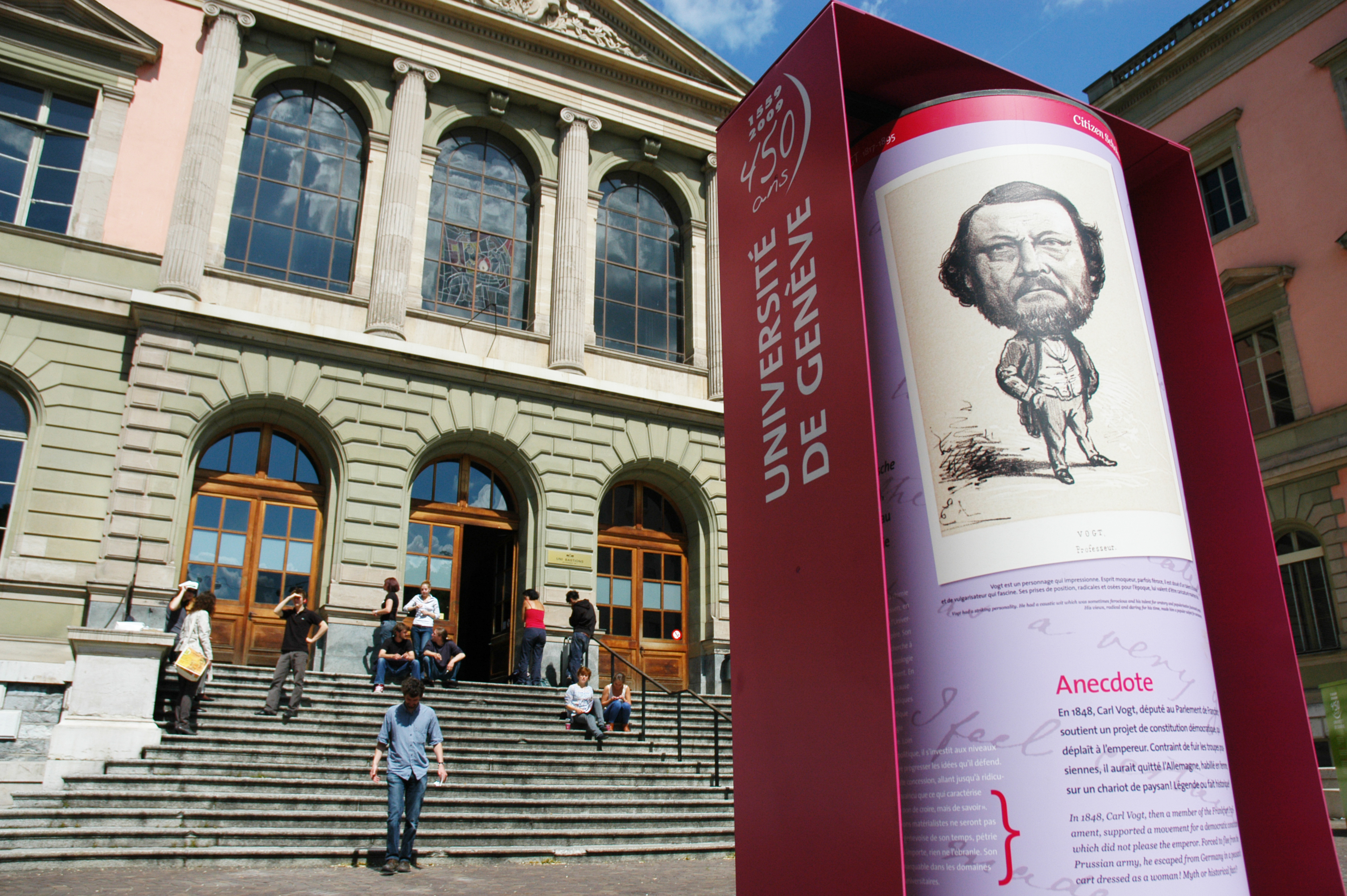 Destinée au grand public, l’exposition «Savants citoyens» propose, jusqu'au 18 octobre, un parcours urbain rappelant l’apport des savants et érudits au développement de Genève. Une vingtaine de postes répartis entre la Vieille-Ville, le quartier de Plainpalais, le quai Wilson et la place des Nations, mettent en exergue des lieux symboliques associés à ces personnalités. Plusieurs visites thématiques à pied ou à vélo sont organisées, dès le mois de juin, en collaboration avec la Ville de Genève.