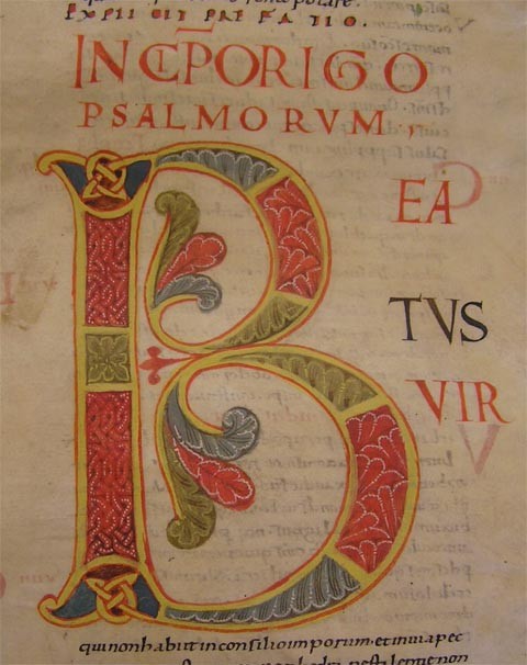 Genève, BGE, lat. 1 f. 149r, Beatus (Psalmi) dimensions du feuillet : 605 x 392 mm dimensions de l’initiale : 155 x 118 mm (hauteur = 23 lignes d’écriture)