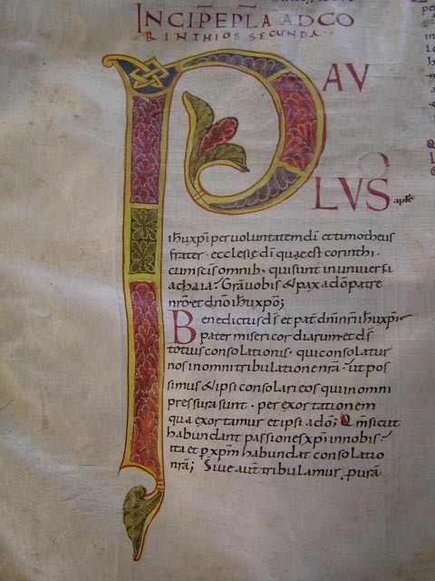 ms. Genève, BGE, lat. 1 f. 399v B, Paulus (Epistula Pauli ad Corinthios II) dimensions du feuillet : 601 x 379 mm dimensions de l’initiale : 258 x 114 mm (hauteur = 28 lignes d’écriture et marge inférieure)