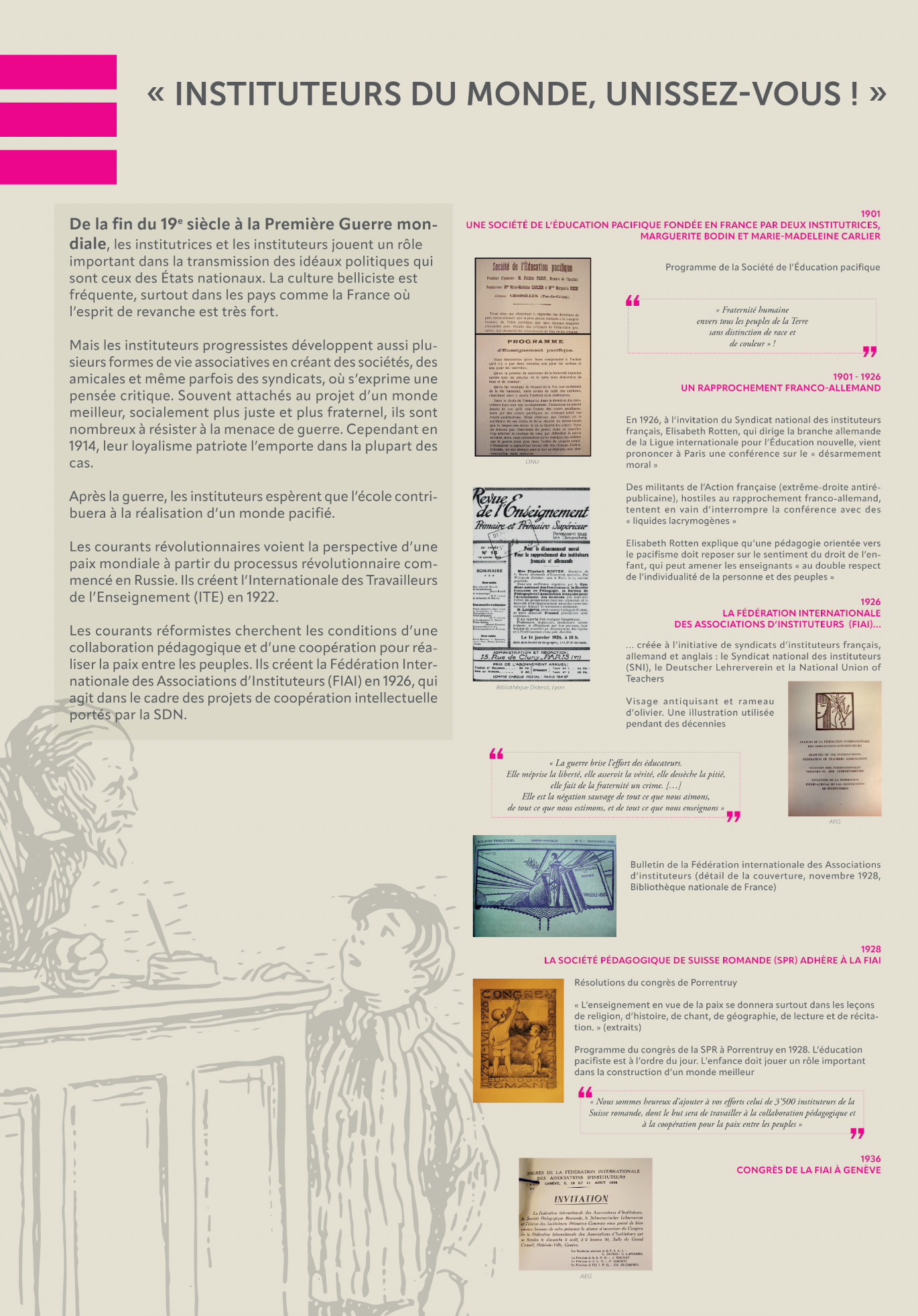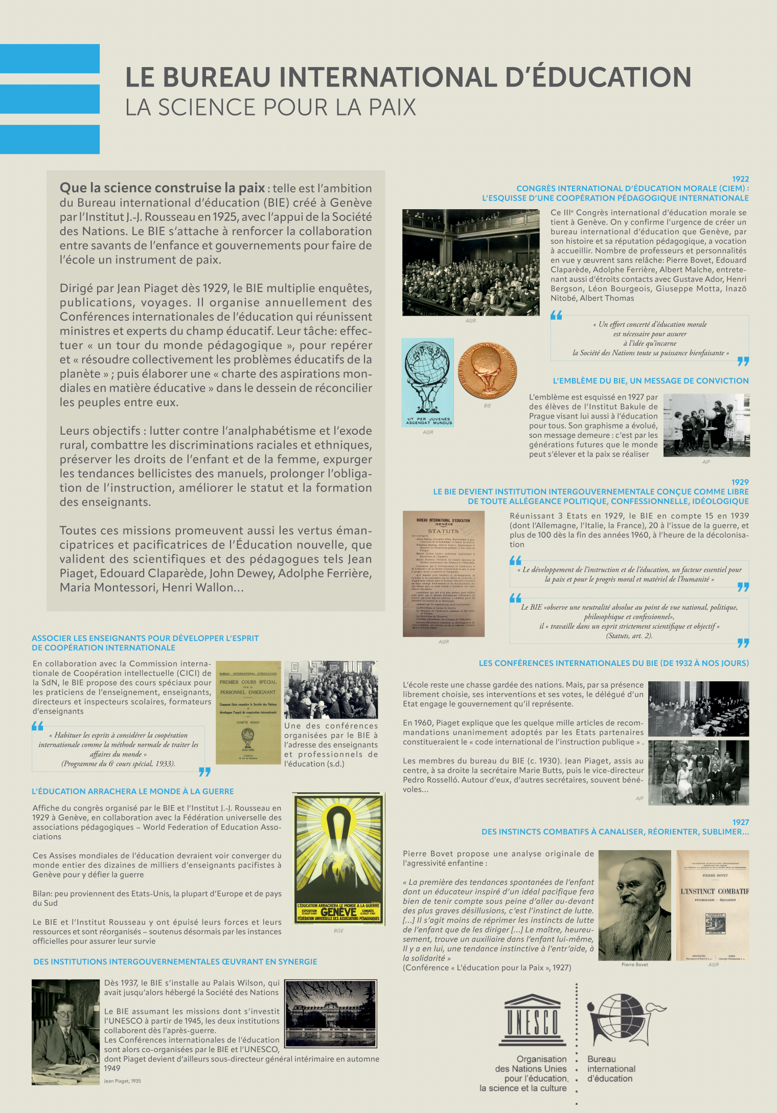Cette exposition a été inaugurée dans le cadre du festival Histoire et Cité organisé par la Maison de l’histoire du 14 au 16 mai 2015. D’abord présentée à l’Université de Genève (à Uni-Dufour, puis à Uni-Mail durant l’automne 2015), elle a été exposée au Palais des Nations en février 2016. Une autre version de cette exposition, dans une mise en page et avec des options graphiques différentes, a été présentée en France, d'abord à Pantin de février à avril 2018, puis à Romainville à l’automne 2018.