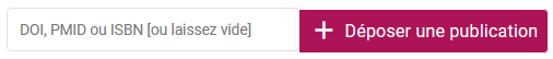 Pour lancer un dépôt par importation, il faut commencer par se rendre dans "Mes dépôts", puis saisir ou coller l'identifiant de la publication dans le champ du formulaire illustré ci-dessous, puis cliquer sur le bouton   + Déposer une publication. Le système va alors récupérer les métadonnées dans des bases de données externes (Crossref, Pubmed, etc.) ainsi que le texte intégral de la publication s'il est disponible sur le site de l’éditeur ou chez Unpaywall.