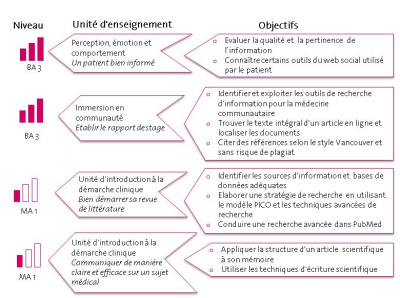 Des formations aux compétences informationnelles sont intégrées au cursus des étudiant.e.s en médecine humaine tout au long de leurs études.