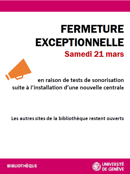 Suite à l'installation d'une nouvelle centrale de sonorisation, des tests seront effectués à la bibliothèque de l'UNIGE, site CMU, le samedi 21 mars 2026.