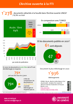 - une quinzaine de posters sur le sujet, et notamment les données chiffrées de l'Archive ouverte pour les différentes facultés de l'UNIGE