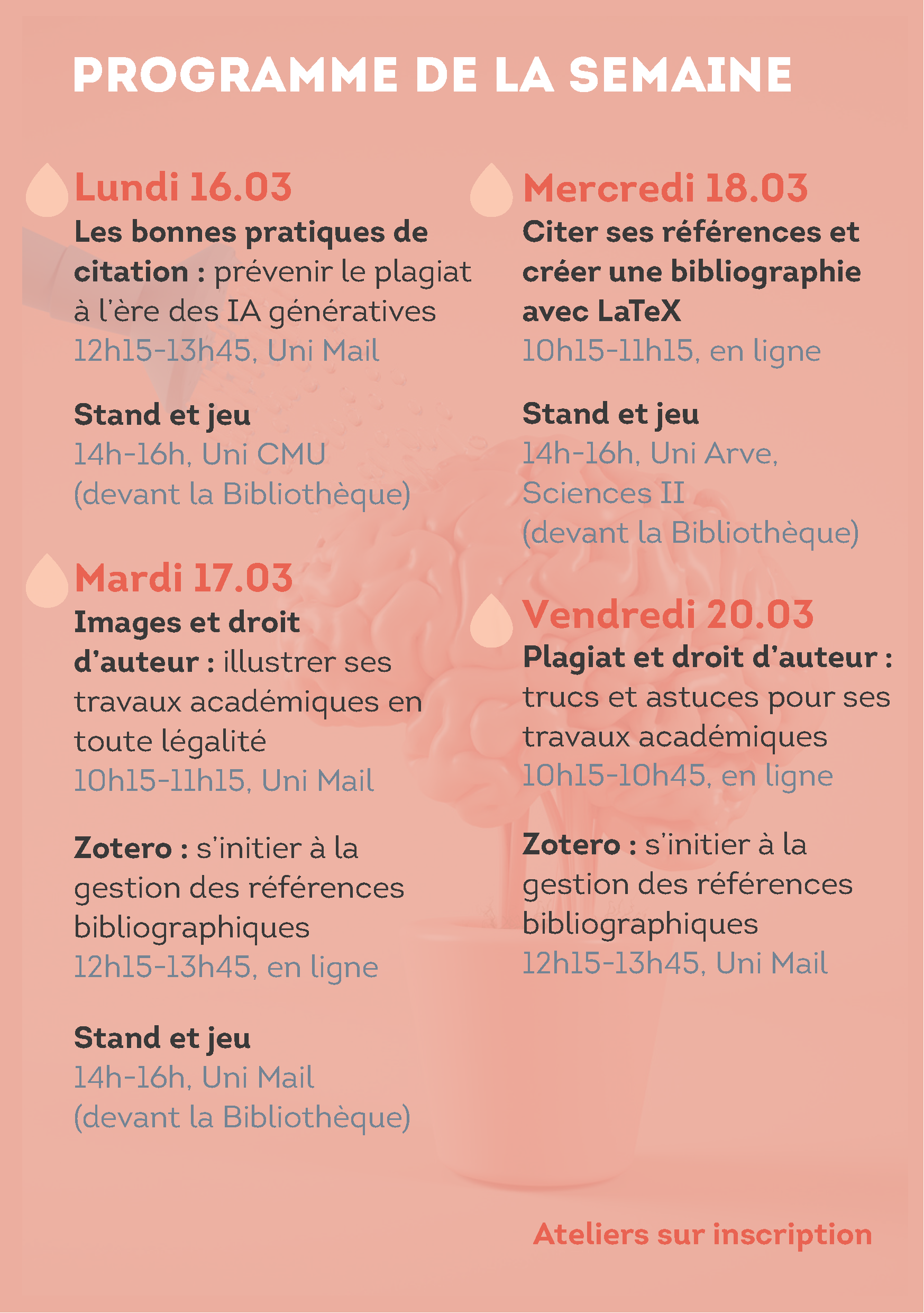 - Plagiat et droit d'auteur : trucs et astuces pour ses travaux académiques | 10h15-10h45, en ligne