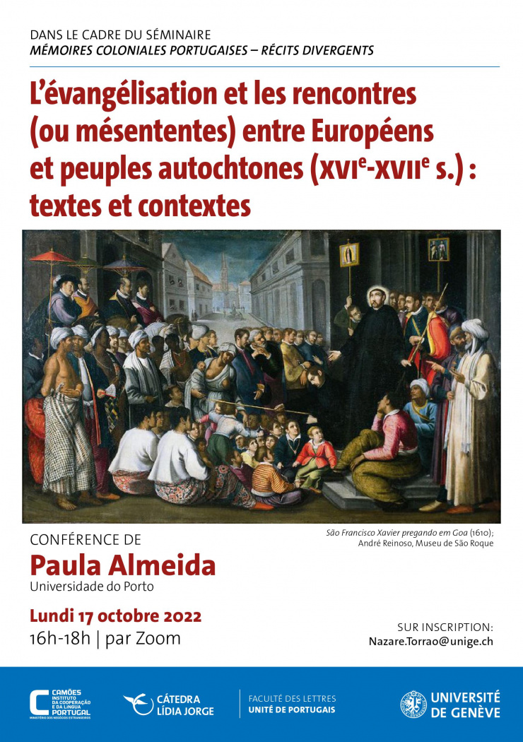 Cette conférence vise à mettre en lumière la problématique de l’évangélisation et des rencontres (ou mésententes) de cultures dans les territoires d’outre-mer, tout au long des XVIe et XVIIe siècles. Partant de la lecture et de l’analyse de textes qui traitent cette question tels que le Tratado das Cousas da China (1570) de Gaspar da Cruz, l’História da Companhia de Jesus na Índia (1614) de Sebastião Gonçalves, l’História de las Indias et le Apologética História Sumária de Bartolomé de las Casas, le Tratado da Terra e das Gentes do Brasil de Fernão Cardim, les traités De Indis et De Jure belli Hispanorum in barbaros (1532) de Francisco de Vitoria et quelques sermons de António Vieira, nous tenterons d’attirer l’attention sur le débat polarisé autour de l’«humanité» des indigènes, en mettant en évidence les aspects liés à leur condition, dans un cadre qui reflète la complexité religieuse et spirituelle des XVIe et XVIIe siècles de la croyance en la proximité de la fin des temps et l’urgence de la conversion qui en découle.