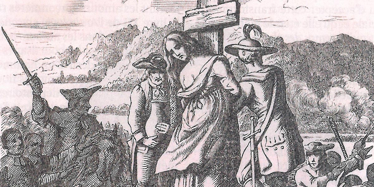 Femme suisse accusée de sorcellerie et condamnée au bûcher (gravure, vers 1700).