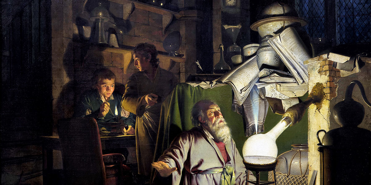 «L'alchimiste découvrant le phosphore» par Joseph Wright of Derby (1771). Derby Museum and Art Gallery, Angleterre.