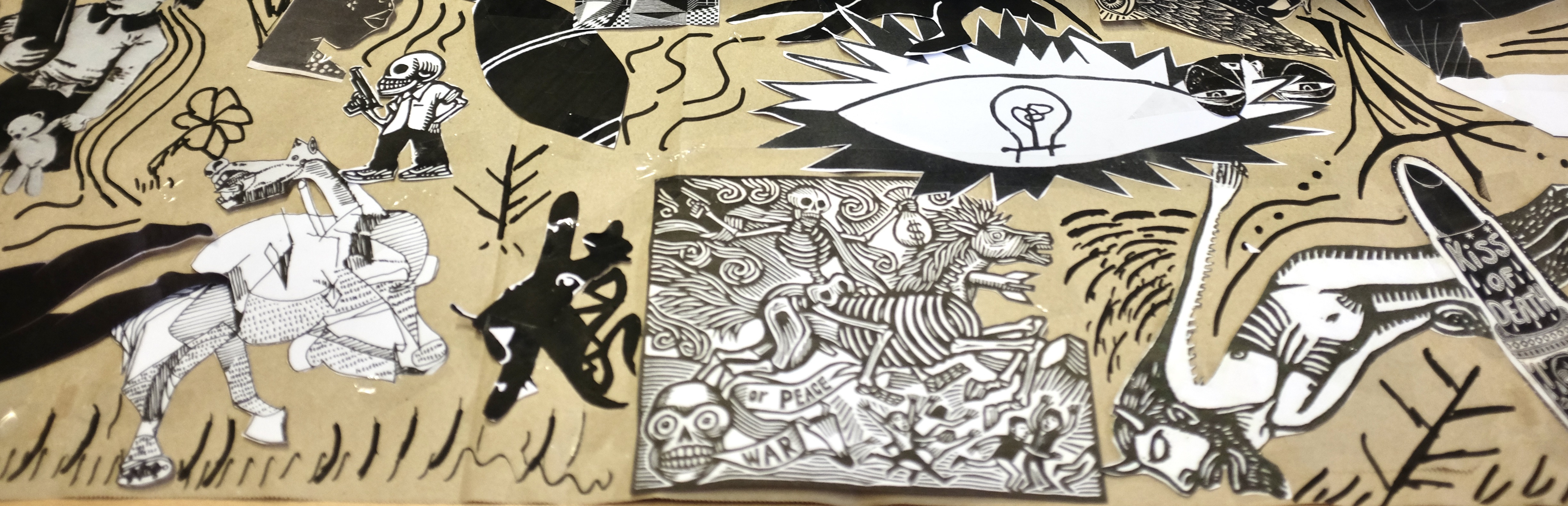 Les étudiant-es de l’Ecole supérieure de bande dessinée et d’illustration de Genève (ESBDi), avec l’appui de Tom Tirabosco et Isabelle Pralong réaliseront en direct une grande toile lors de la Semaine des droits humains. Cette performance s’inscrit dans le cadre du projet artistique international KIDS GUERNICA. Ce projet, qui s’inspire du tableau peint par Picasso en 1937 pour dénoncer le bombardement de la ville basque, a débuté en 1995. Il propose aux jeunes du monde entier de délivrer un message d’espoir sur une toile aux dimensions proches de celles de « Guernica » (3,5 x 7,8 mètres). Plus de 300 toiles ont déjà été conçues et exposées dans une quarantaine de pays.