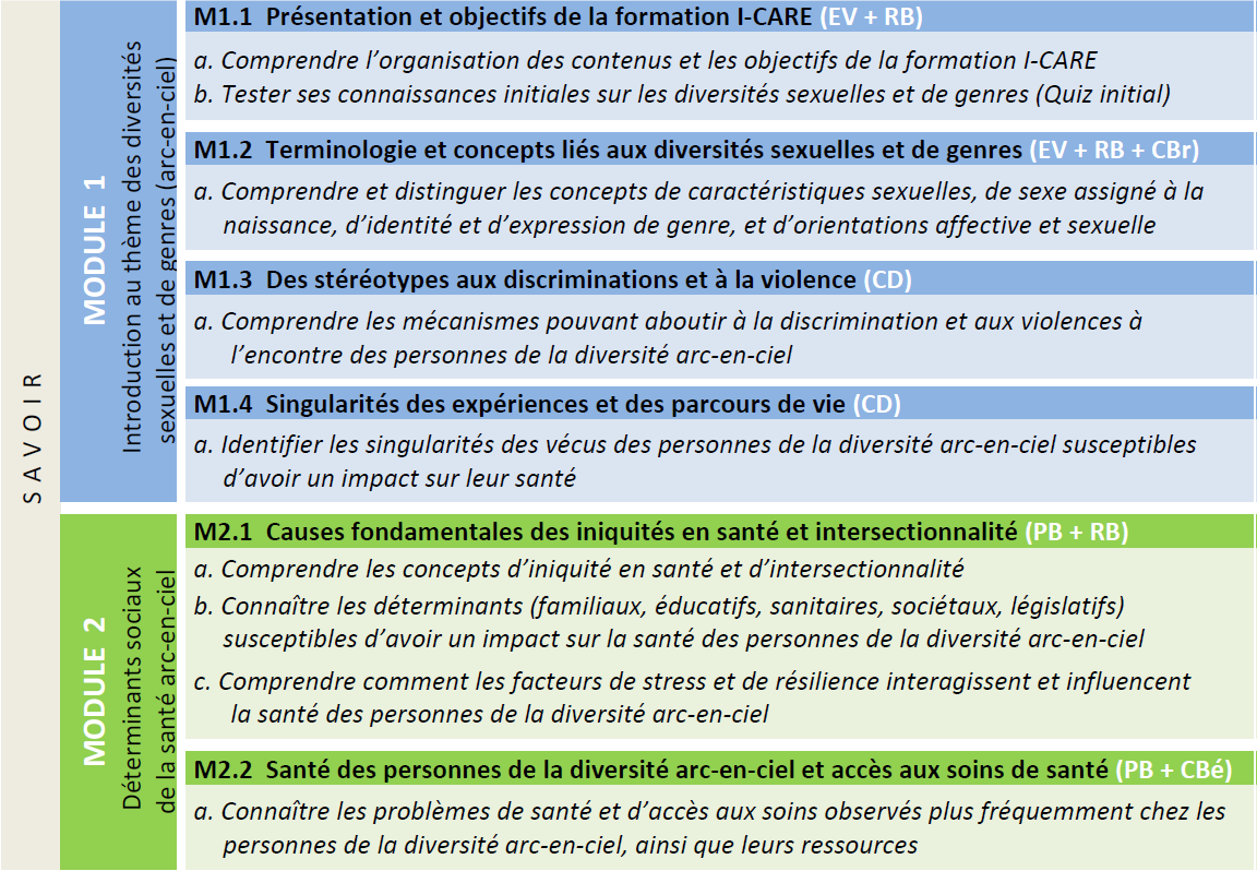 Ce projet vise à créer une formation en français, par e-learning, sur la santé des personnes de la diversité liée à l'orientation sexuelle et affective, à l'expression et à l'identité de genre, et aux caractéristiques sexuelles (diversité SOGIESC (Sexual Orientation, Gender Expression and Sex Characteristics) ou arc-en-ciel (familles dont au moins l'un des parents se considère comme lesbienne, gay, bisexuel-le, trans ou queer)), et le rôle des professionnel-le-s de la santé dans la provision de soins adéquats et respectueux. La formation I_CARE utilisera l'expression «personnes de la diversité arc-en-ciel» comme désignation générale.