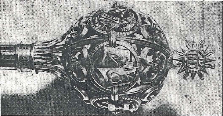 Après la chaîne du Recteur en 1958, les joaillers de la Maison Patek Philippe réalisent et offrent à l’Université de Genève une masse destinée à l’huissier lors de ses cérémonies. Elle est remise au Sénat de l’Université le 26 mai 1959. Réalisée en argent massif dans le même style que la chaîne, elle pèse plus d’un kilo et aura nécessité plus de 500 heures de travail. Les 6 facultés sont symboliquement représentées sur la sphère, surmontée d’un soleil dont le centre est occupé par l’écusson de Genève et par les armes de l’Université. Dans le manche dévissable se trouve un parchemin sur lequel il est écrit :