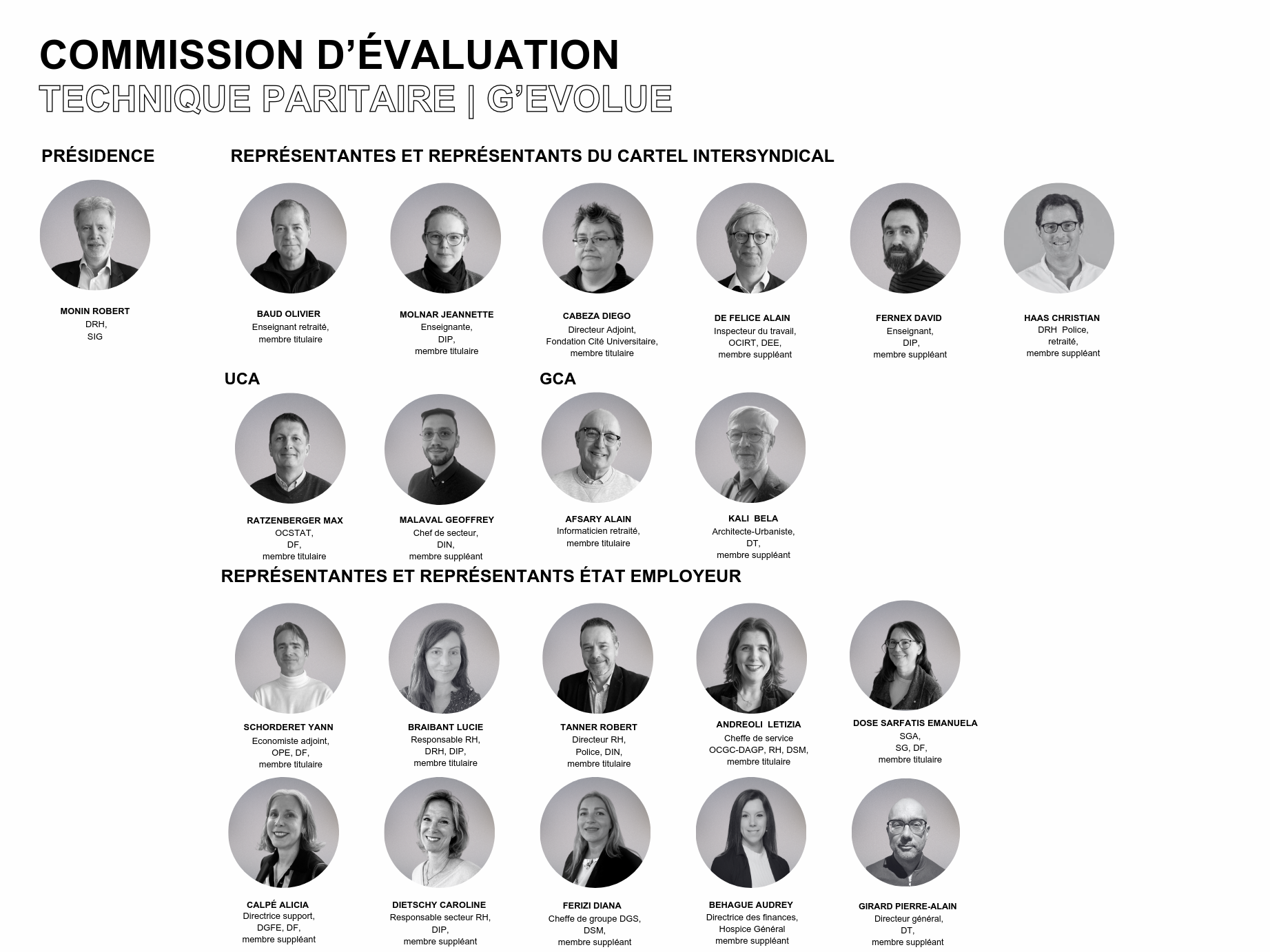 Constituée à fin 2022 à la suite de la signature du protocole d'accord entre les associations représentatives du personnel et les autorités cantonales, la commission d'évaluation technique paritaire G'Evolue a entamé ses travaux le 15 février 2023.