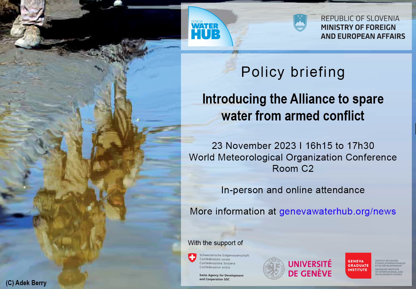 L’événement est organisé conjointement par le Geneva Water Hub et la République de Slovénie avec le soutien de la Confédération suisse, l’Université de Genève et l’Institut de Hautes Etudes Internationales et du Développement.