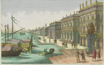 An engraving of 18th-century Cadiz by Balthazar Friedrich Leizelt.