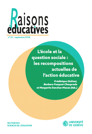 L'école et la question sociale : les recompositions actuelles de l’action éducative sous la direction de Frédérique Giuliani, Barbara Fouquet-Chauprade et Margarita Sanchez-Mazas. Genève : Université de Genève, 2018.