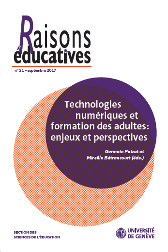 Technologies numériques et formation des adultes: enjeux et perspectives édité par Germain Poizat et Mireille Bétrancourt. Genève : Section des sciences de l'éducation de l'Université de Genève.