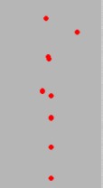A scrambled point-light walker that moves toward the left. Viewed statically, the direction of motion