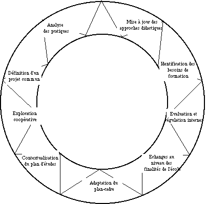 En fin de compte, on cherche à dépasser l'approche bureaucratique traditionnelle qui repose sur l'hypothèse qu'un contrôle serré exercé sur les enseignants qui " sont à la fois le problème, la solution et le bouc émissaire ", soit le seul moyen dintroduire le renouveau. On vise au contraire à mieux profiter des potentiels existants, en suscitant l'engagement, l'intérêt, la participation et l'appropriation par les enseignants du processus de développement. Dans un climat d'esprit d'équipe, de confiance mutuelle, de transparence, de coopération et de collégialité, " naissent de nouvelles normes de travail, grâce à des enseignants se supervisant mutuellement, parlant souvent de problèmes pédagogiques et didactiques, s'engageant dans la planification commune, d'où un partage des valeurs qui renforce l'amélioration de l'école " (Cuban, 1984).