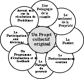 Sesquisse alors un profil très différent de celui du chef qui doit constamment susciter, aplanir, encourager, pousser à entreprendre pour que quelque chose bouge. Et qui ne le fait que sil a beaucoup dénergie, sil est résolument orienté vers la promotion du changement, sil accepte de se heurter aux pesanteurs et aux résistances, sil vise le développement et la valorisation du travail déquipe comme source de professionnalisation, sil se centre sur la régulation des processus de changement, sur la recherche de cohérence et de synthèse, sil incite son corps enseignant à concevoir un projet collectif original. Les chefs détablissement qui travaillent dans ce sens, réussissent à redonner du sens à une série de comportements connus, mais qui, vus sous langle de la professionnalisation, prennent une signification nouvelle, reçoivent plus de force et parviennent en fin de compte " à faire la différence " :