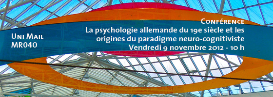 ROMAND (CNRS Paris, Laboratoire Sphère, Sciences, philosophie, histoire9 donnera une conférence sur le thème : La psychologie allemande du 19e siècle et les origines du paradigme neurocognitiviste Vendredi 9 novembre - 10h - Uni Mail - salle MR040