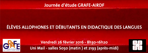 Le Groupe de recherche sur l'analyse du français enseigné (GRAFE) et l'Association internationale pour la recherche en didactique du français organisent une journée d'études