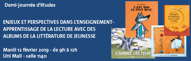 Le but de cette demi-journée d'études est de mettre en discussion différents enjeux et perspectives de l’enseignement-apprentissage de la lecture avec des albums de la littérature de jeunesse à partir de recherches menées dans ce domaine en étroite collaboration avec des acteurs (enseignants, élèves, coordinateurs pédagogiques, directeurs) du terrain.