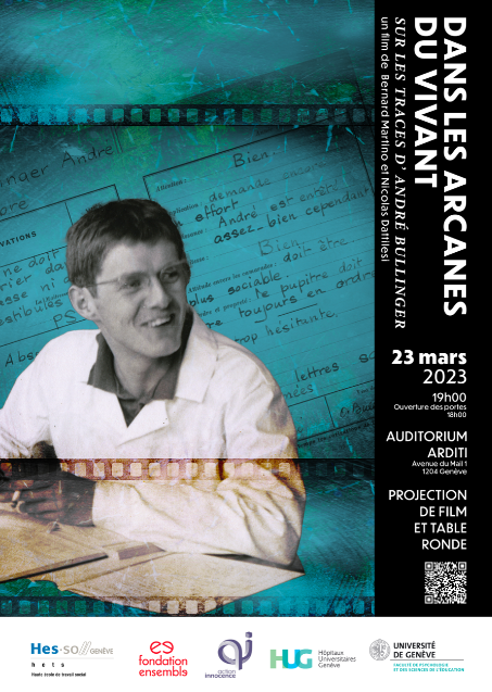 La Haute école de travail social de Genève, la Faculté de psychologie et des sciences de l'éducation de l'UNIGE et les Hôpitaux universitaires de Genève (HUG), organisent la projection du film "Dans les arcanes du vivant. Sur les traces d'André Bullinger, pionnier de la sensorimotricité", le 23 mars 2023 à 19h à l’Auditorium Arditi. La projection sera précédée d’un apéro dinatoire et suivie d’une table ronde.