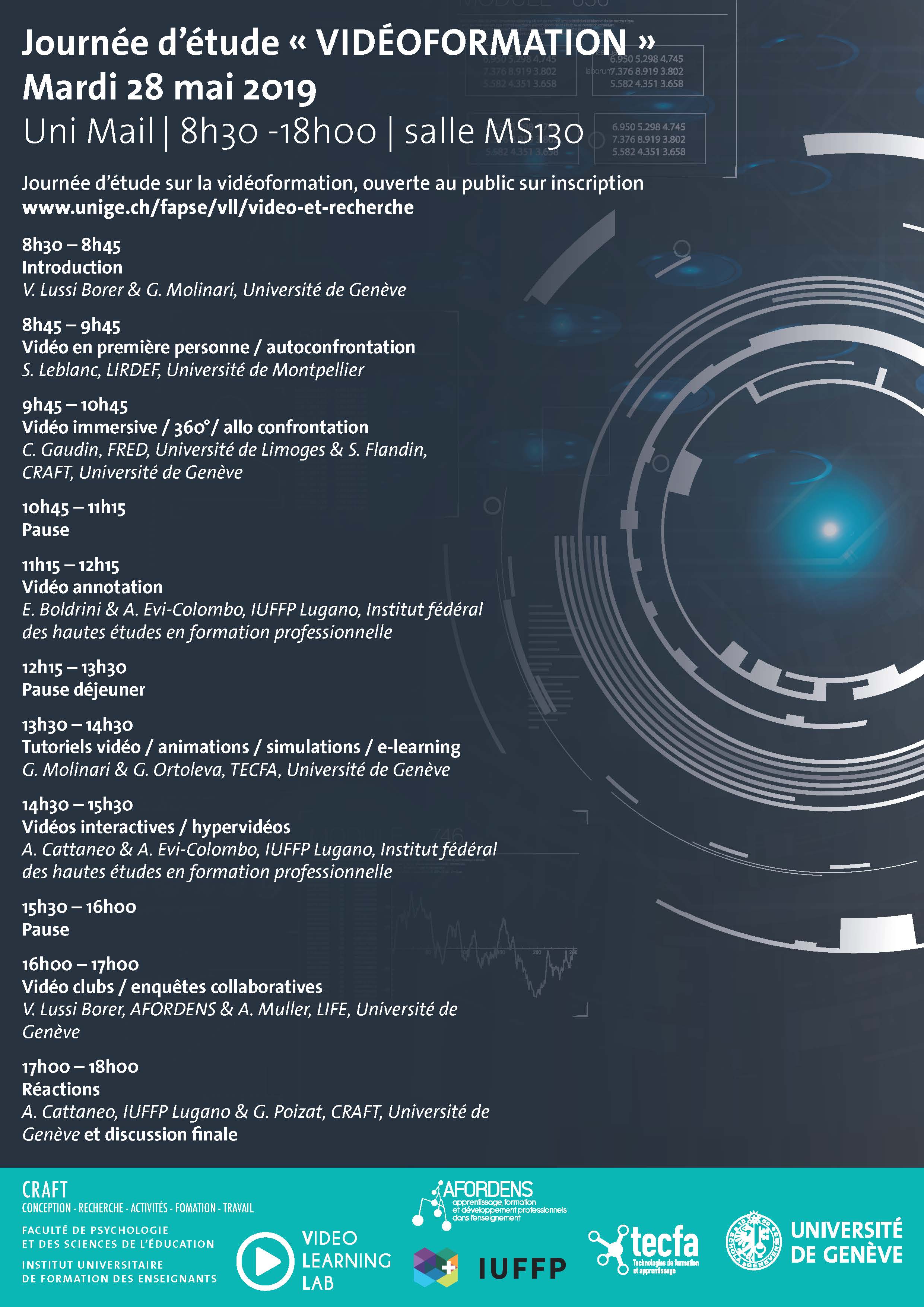 Organisation : Équipes CRAFT et AFORDENS, Video Learning Lab, Section des sciences de l'éducation, IUFE, TECFA, IUFFP.