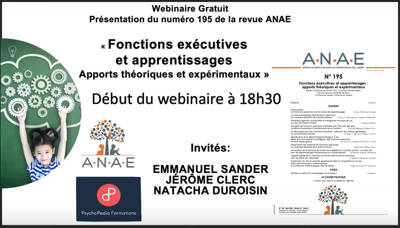 Webinaire « Fonctions exécutives et apprentissages : apports théoriques et expérimentaux » pour la sortie du numéro 195 de la revue ANAE.