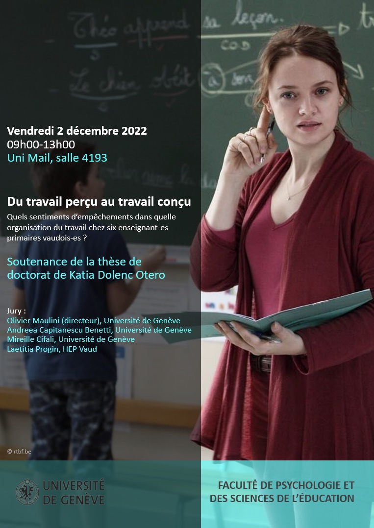 Du travail perçu au travail conçu : quels sentiments d’empêchements dans quelle organisation du travail chez six enseignant.e.s primaires vaudois.e.s > Le projet > La soutenance > La thèse