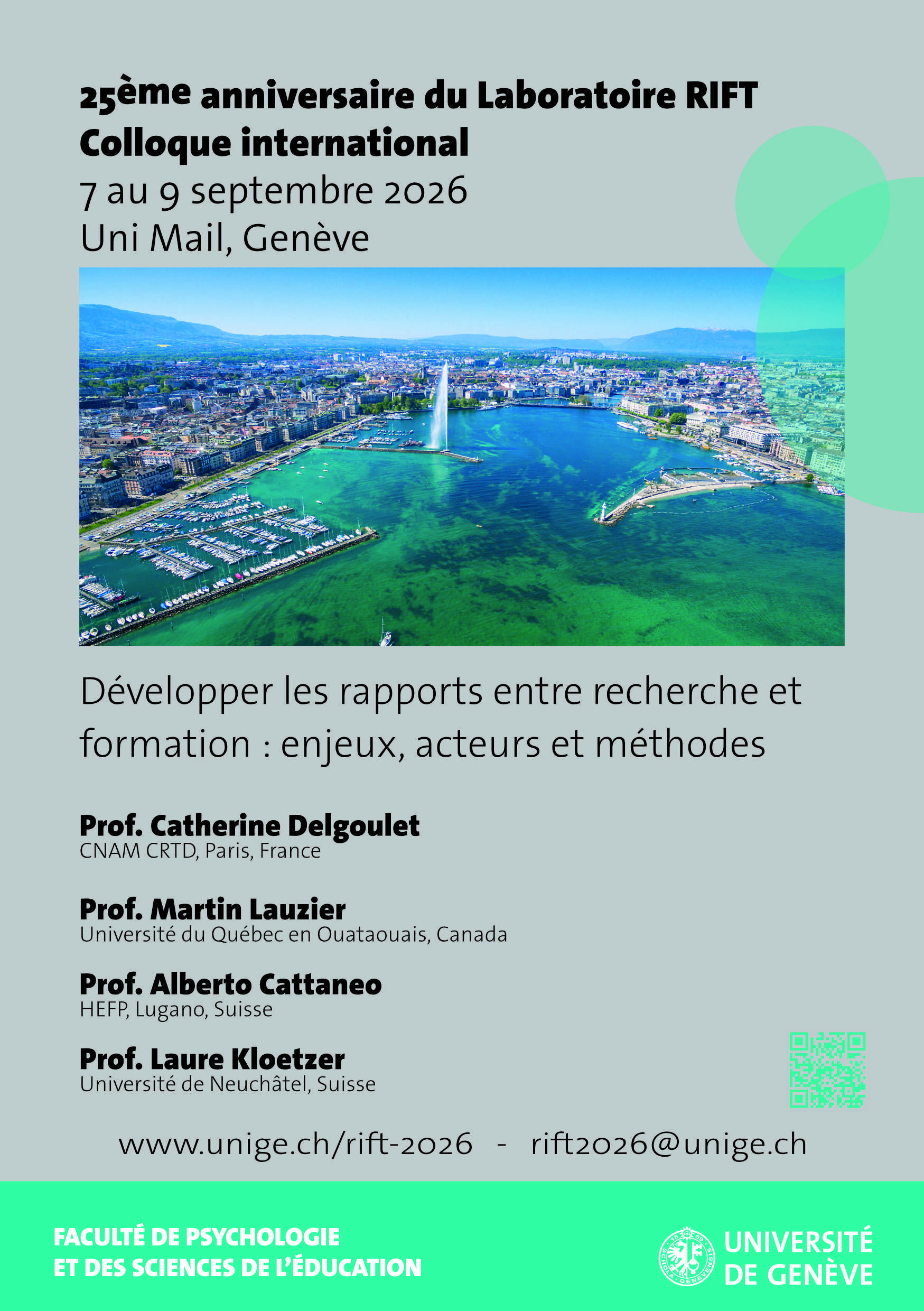 Le Laboratoire RIFT (Recherche - Intervention - Formation - Travail) a été créé en 2002 dans le secteur de la Formation des Adultes de la Faculté de Psychologie et des Sciences de l'Education de l'Université de Genève.