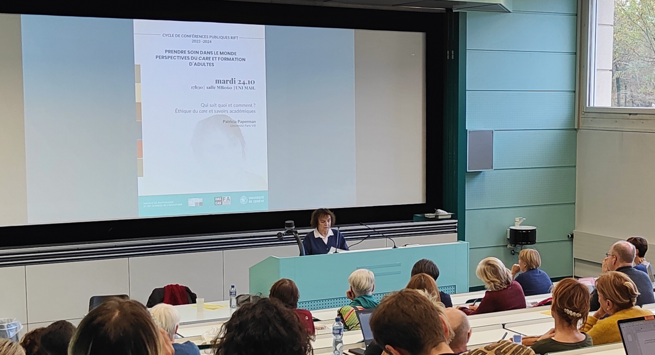 En ce mardi 24 octobre, le laboratoire RIFT accueillait Patricia Paperman pour inaugurer un nouveau cycle de conférences consacré à la perspective du Care en formation des adultes. Quelle meilleure occasion pour entrer en réflexion sur la thématique « Prendre soin dans le monde » que de venir écouter Patricia Paperman sur un sujet qu’elle a incarné avec une grande perspicacité dans le paysage académique français et bien au-delà. Sociologue de formation et professeure émérite de l’Université Paris 8-Vincennes, Patricia Paperman a très largement contribué à faire connaitre et reconnaitre les éthiques du care en sciences humaines et sociales.