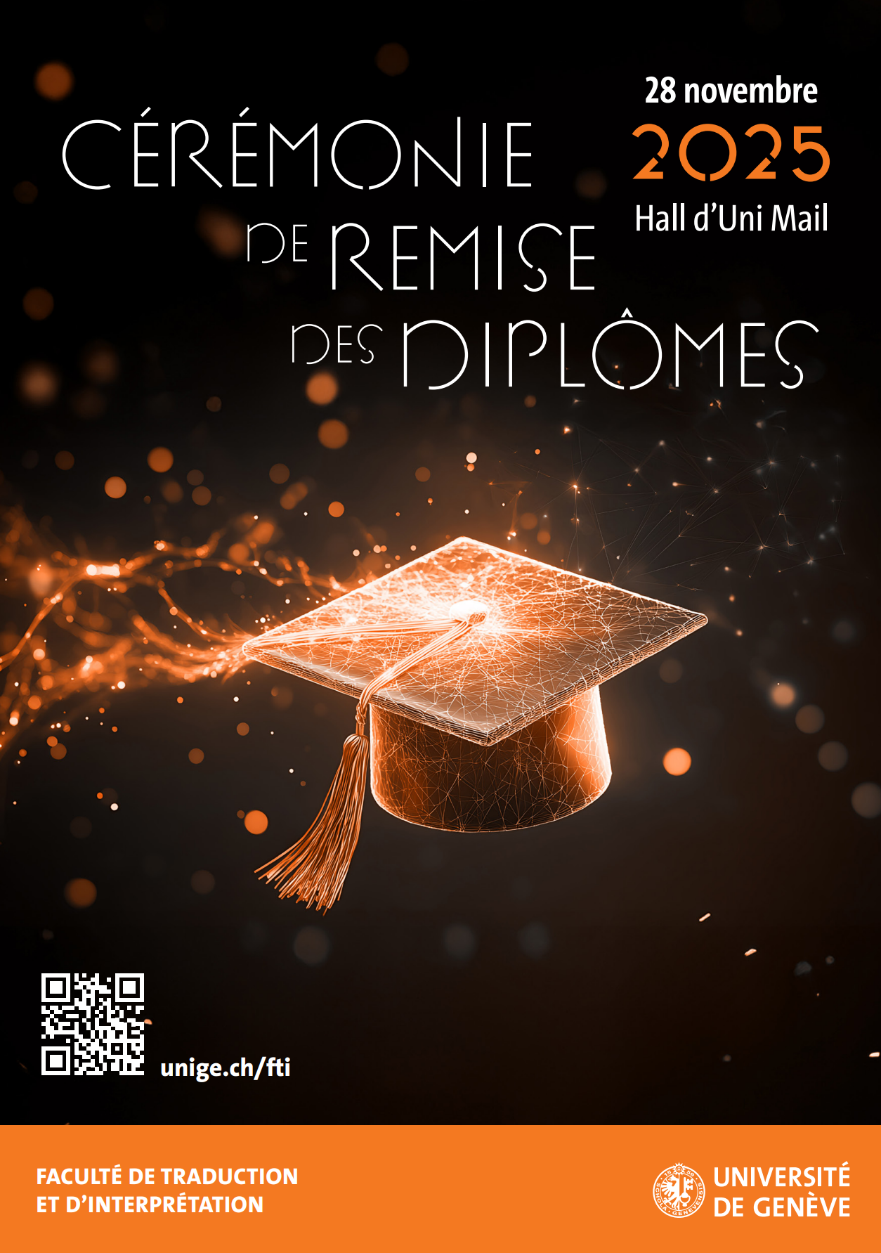 La cérémonie de remise des diplômes se tiendra le vendredi 28 novembre 2025 à 18h15, dans le hall d’Uni-Mail.