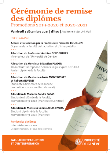 Cérémonie de remise des diplômes pour les étudiants et étudiantes ayant obtenu un titre universitaire de la Faculté de traduction et d'interprétation au cours des années académiques 2019-2020 et 2020-2021.