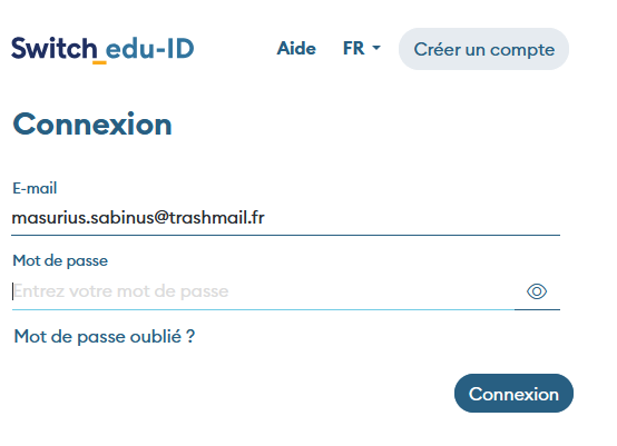Si l'adresse email liée à votre compte Switch a été inactivée, vous pouvez tout de même vous connecter à votre compte en ajoutant à la fin de votre email le texte ".inactive"