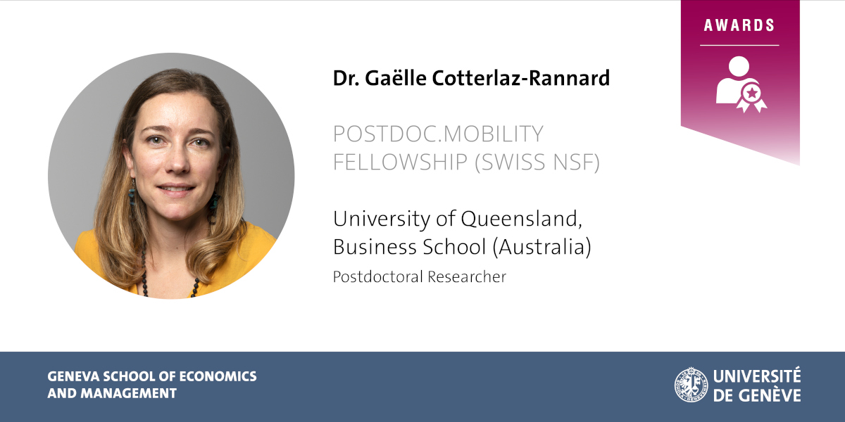 Dr. Gaëlle Cotterlaz-Rannard, who recently obtained her Ph.D. in Management, will hold a postdoctoral researcher position on business models and non-profit organizations at the University of Queensland Business School (Australia).