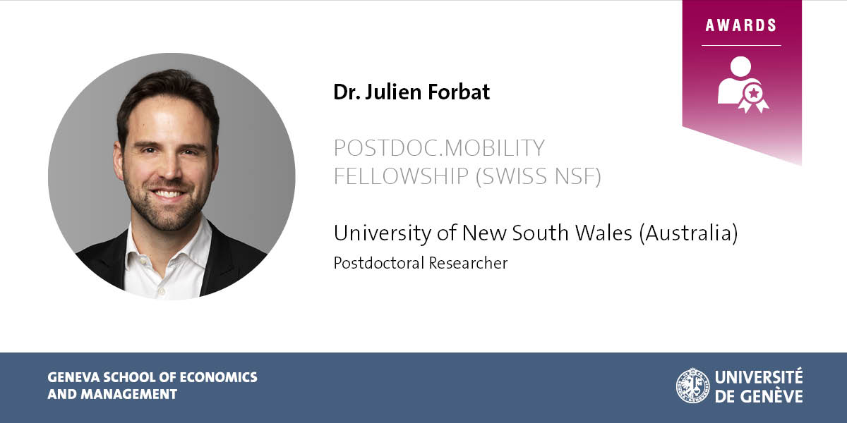 Dr. Julien Forbat, Lecturer at the GSEM and holder of a Ph.D. in Interdisciplinary Studies, will have a postdoctoral researcher position at the University of New South Wales (Australia).