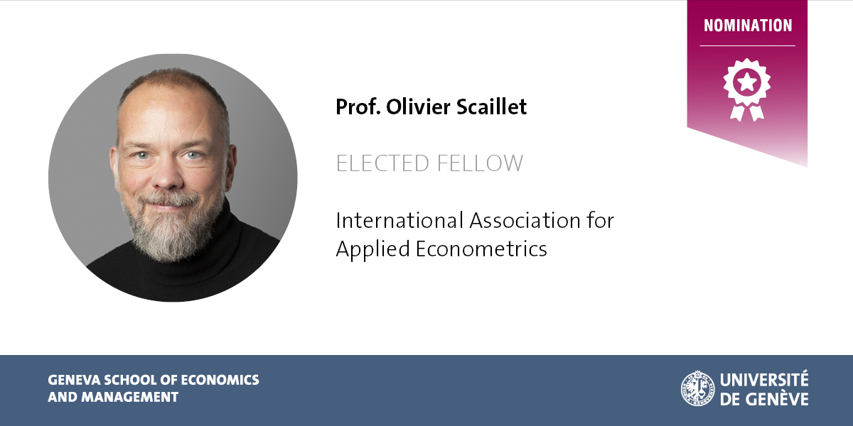 Le Professeur Olivier Scaillet a été élu membre « Fellow » de l’International Association for Applied Econometrics. Il est le premier professeur d'une institution suisse à avoir cet honneur.