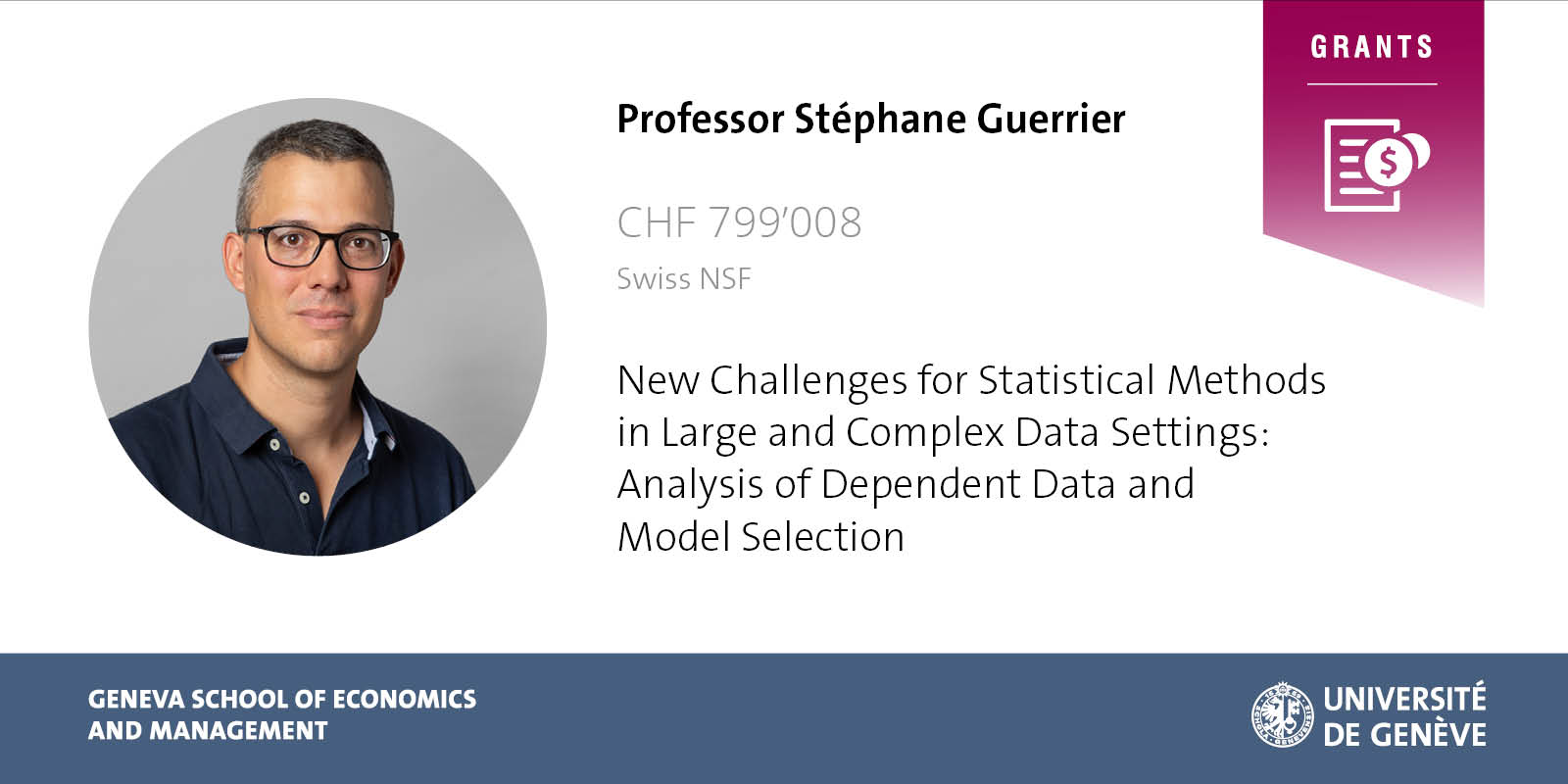 Les membres du Research Center for Statistics publient des travaux scientifiques qui relèvent principalement de la statistique fondamentale (statistique mathématique) et se concentrent sur des domaines de recherche appliquée comme l’économétrie de la finance, les sciences économiques, les sciences de la santé, l’ingénierie, les sciences de l’environnement, la psychologie et les sciences sociales. Plus particulièrement, les chercheur-e-s du Centre fournissent leur expertise en ce qui concerne l’inférence robuste, l’inférence à partir d’un petit échantillon, l’inférence indirecte, la statistique semi-paramétrique ou non-paramétrique, le choix du modèle pour les données en grande dimension, l’analyse de séries chronologiques, les modèles linéaires à variables latentes et modèles de mélange, et l’analyse de données longitudinales.