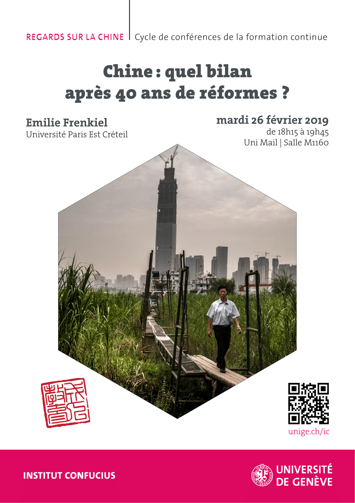Le mardi 26 février 2019, l’Institut Confucius organise une conférence publique intitulée « Chine : quel bilan après 40 ans de réformes ? » par Emilie Frenkiel, maîtresse de conférences en science politique à l’Université Paris Est Créteil.