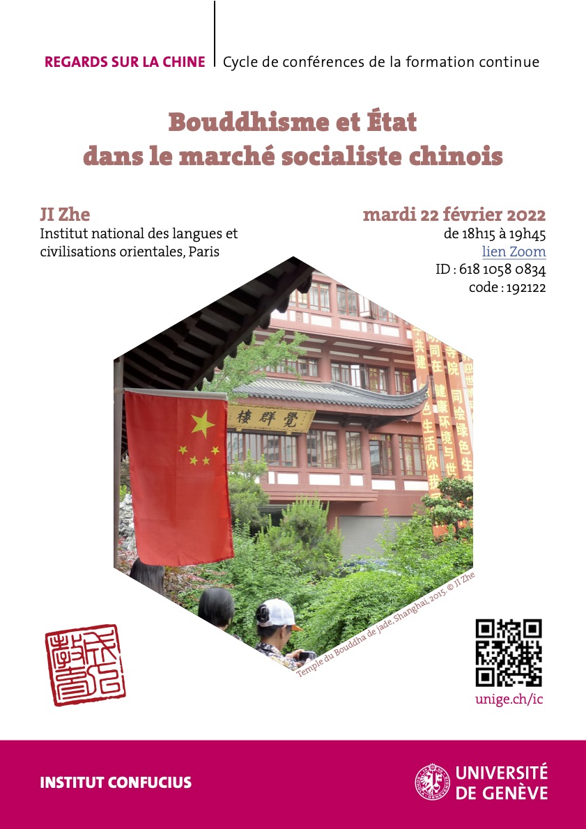 Le mardi 22 février 2022, l’Institut Confucius organise une conférence publique intitulée « Bouddhisme et État dans le marché socialiste chinois », par le Prof. JI Zhe, de l’Institut national des langues et civilisations orientales (INALCO) de Paris.
