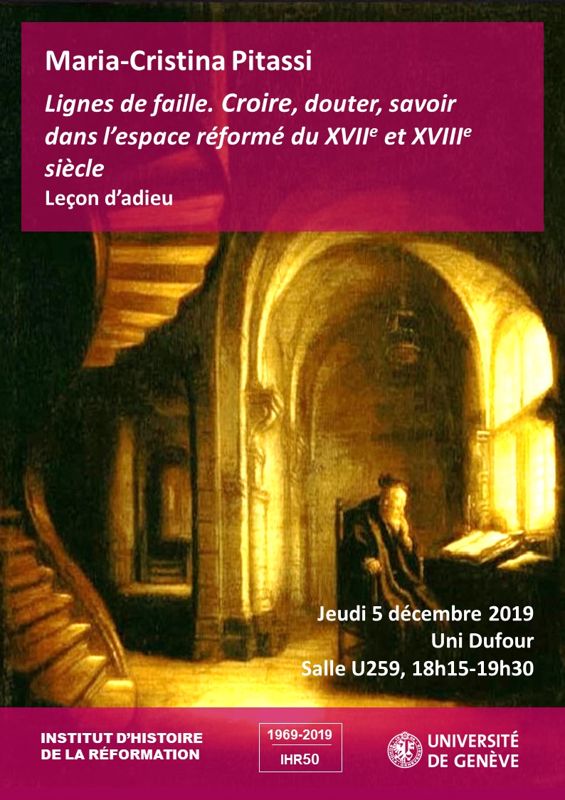 Maria-Cristina Pitassi - Leçon d'adieuVoir ou revoir la leçon d'adieu de la professeure Maria-Cristina Pitassi, dans le cadre des journées d'étude pour le cinquantenaire de la fondation de l'Institut d'histoire de la Réformation : To view this video please enable JavaScript, and consider upgrading to a web browser that supports HTML5 video