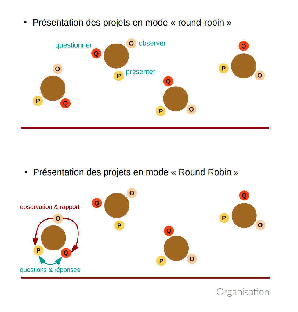 Afin d’impliquer davantage les étudiant-es dans la phase de visionnement du travail des autres groupes, l’idée de départ a été de s’inspirer des battles en hip-hop. Dans ces compétitions de danse, 2 équipes s’affrontent en s’alternant sur la piste de danse. À la fin, les spectateurs votent pour l’équipe ayant réalisé la meilleure performance. Afin de concrétiser cette idée dans le cours, les étudiant-es forment des groupes (5 étudiant-es). Chaque groupe doit réaliser 2 vidéos d’une durée de 10-15 min sur des thèmes imposés concernant la matière « groupes de sociétés » (ex. « notion de groupe », « protection des créanciers »), et 2 vidéos sur la matière « restructurations » (ex. « numerus clausus des restructurations », « protection des travailleurs »). Chacun des thèmes proposés aux étudiant-es est traité par 2 groupes différents. Durant la phase de réalisation des vidéos, l’enseignante rencontre régulièrement les étudiant-es de chaque groupe (2 fois par semaine au début) afin d’échanger sur les recherches, les idées et la structure des vidéos. À la fin de cette phase, 2 séances plénières ont lieu durant lesquelles toutes les vidéos sont visionnées. C’est l’occasion pour les étudiant-es (auteur-es ou non) de comparer les vidéos qui traitent du même thème. Parallèlement, les auteur-es des vidéos peuvent bénéficier de feedbacks de leurs pairs de manière informelle sur le travail fourni. Pour l’évaluation, l’équipe enseignante tient compte du travail en groupe pour la confection des vidéos, d’une courte présentation individuelle sur un sujet imposé aux étudiant-es et une question théorique à développer sur les vidéos des autres groupes. Ces 2 éléments, comparaisons des vidéos et questions sur le contenu des vidéos, ont pour but d’impliquer le plus possible les étudiant-es lors des séances de visionnage. |