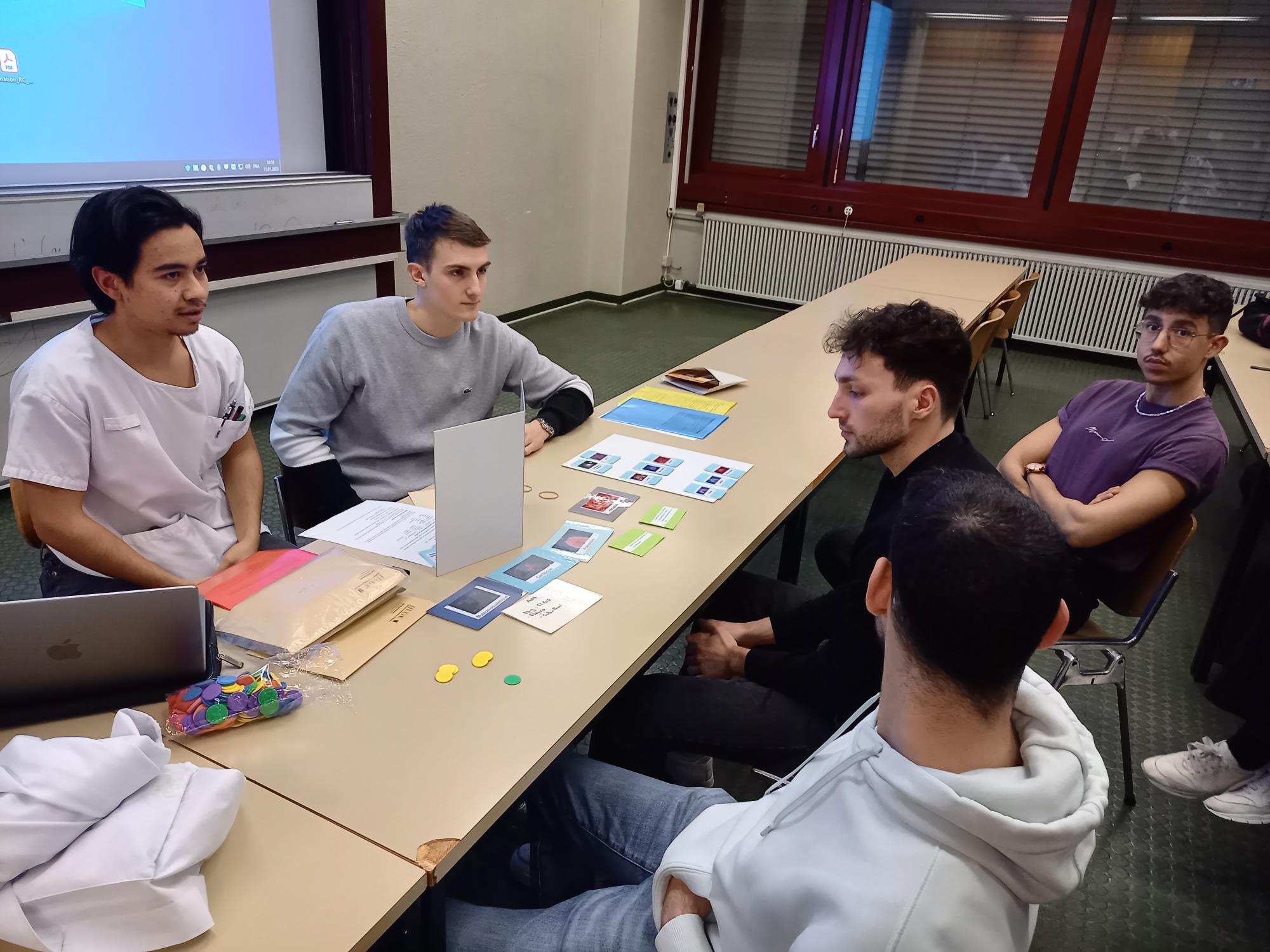 This project was developed in two phases: the creation of the game and the development of an open source teaching material based on the game. The game creation phase was offered to English master's students in an optional seminar. The seminar in this form was the one and only occurrence of this course format since it does not make sense to repeat the game creation phase. During this seminar, the teachers delivered the theoretical content by condensing it over a period of 4 weeks. They decided to deliver the essential theory in a classical format and to bring in the secondary concepts when the students felt the need to do so during the creation of the game. During the rest of the semester, students met weekly in person to make progress on the project and could also request meetings in small working groups with the teachers. At the end of the theory sessions, the teachers presented the students with an existing board game, the popular "Who is this?" and asked them to create a "linguistic" version of it. The resulting product is a game, to be used as a teaching tool for the presentation of the theoretical concepts presented in the previous sessions. The students are asked to work in groups with well-defined roles. The game produced is an adaptation of the guessing game. In the language version of the game, players must guess a mystery language instead of a character as in the original game. The mystery language is revealed by looking for properties that uniquely identify the composition of that language such as, for example, certain elements of the lexicon, or the order in which identified syntactic constituents such as subject, verb, and object are placed in a simple sentence, or morphological properties such as the type of marking used to express the future tense. The cards thus present only those properties that are validated for the language in question. The game thus familiarizes the players with notions from different areas of linguistics: morphology, syntax, lexicon, and illustrates in a playful way the idea that the diversity of languages can be reduced to a set of variation points. Following its theoretical development, the students met with FacLab students to create the physical prototype of the game "Guess the Language! The mission of the Faclab is precisely to bring the university community closer to the process of making ideas or objects. The digital version of the game was coded by two computer science students in close collaboration with English majors and based on this first wooden prototype. In the digital version, the interface offers access to a glossary that explains all the terms present in the game as well as to a feature list that presents all the languages of the game as well as all their properties in the form of a 2 entry table. The crossings in the table indicate whether a property applies to a language (green cross) or not (red cross). In the last class session, students are invited to present the developed solution publicly in front of the computer science students who helped them and the members of Upskills. The evaluation format of the course depends on the student. It can be done in the form of a written report (finding the specific properties of a given language) or an oral exam (developing an aspect of the project, a problem encountered and the proposed solutions). The course, led by the same teachers next fall, will be built around the game. It will offer students the possibility to add a language, a property and have access to the code to modify it if they wish by changing the defined fields. While acquiring knowledge in linguistics, students will be familiar with computer coding and will be able to find their way around. This course will be evaluated in the form of a research project as well as mandatory activities in Moodle. |
