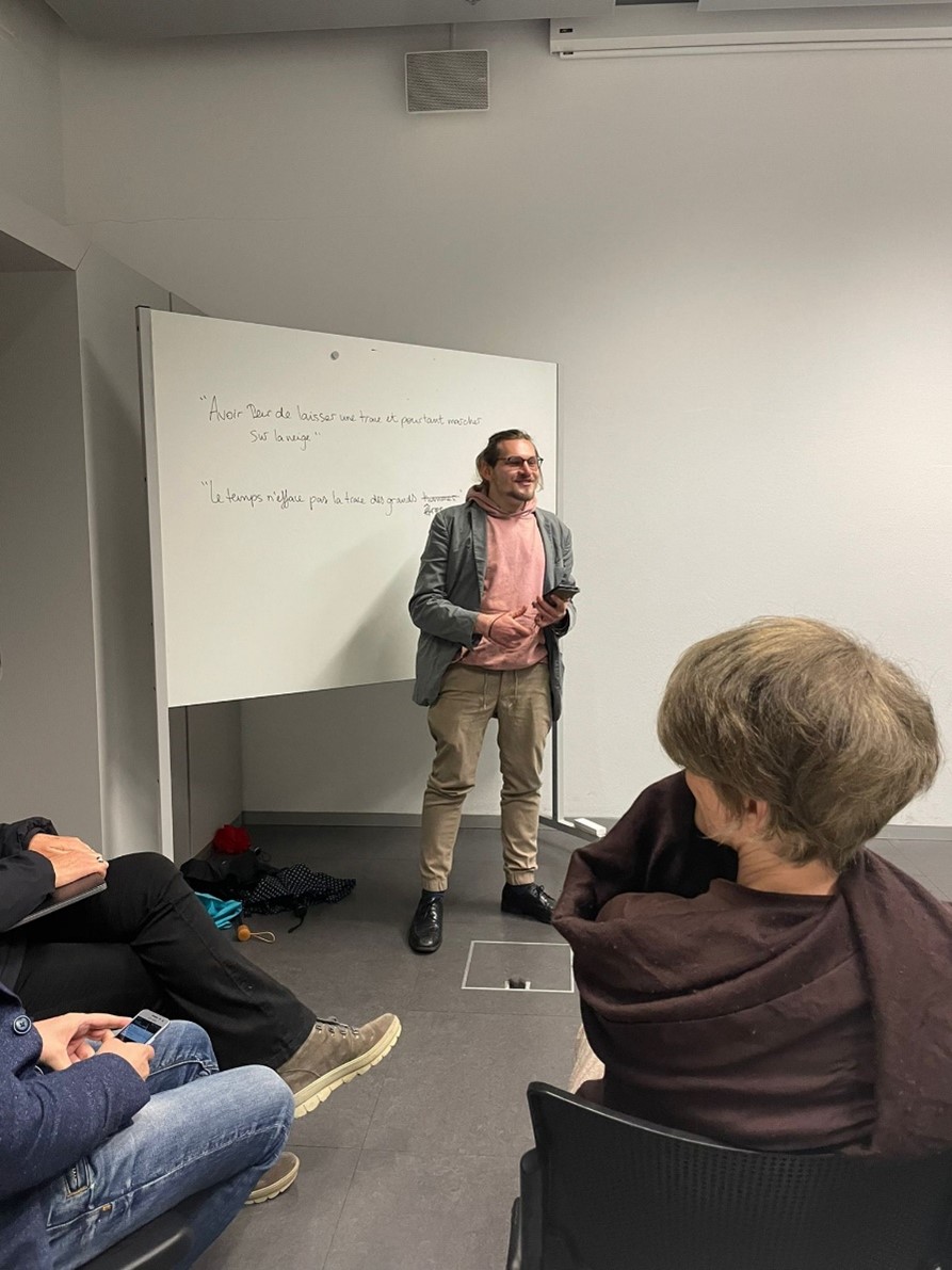 Many people, young and old, feel the need to express their emotions in the face of ecological crises, and to put words to the (non)transitions underway. Within a master’s degree in environmental sciences, the analysis carried out by the teacher showed that spaces for learning, exchanging and sharing about ecological crises were often either very formal (e.g., courses, conferences) or very informal (e.g., private circles). What's more, they are generally oriented towards a theoretical rather than emotional approach, and almost never combine the creative production dimension with that of scientific diagnosis. Developed within the framework of the University of Geneva's Cultural Activities, EcoSlam workshops support these observations and respond to the need for informal spaces for exchange. The aim is to use the exchange, writing and speaking techniques of slam - an art of oratory that invites everyone to reappropriate language to speak about what moves them and is close to their hearts - to help participants write and share their own texts. Launched in 2022, this series of workshops has enabled some twenty students, collaborators and externs to discover or perfect writing techniques to put their concerns into words, and to share personal, powerful texts with a wider audience. |