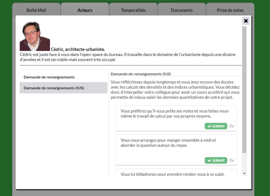Le jeu s’inscrit dans la thématique du droit des sociétés de personnes, plus particulièrement dans celle des règles qui permettent de quitter ou de mettre fin à une telle société. A la base du jeu, il y a l’idée qu’une associée peut être prisonnière d’une société à laquelle elle ne veut pas appartenir et qu’il faut l’aider à trouver des moyens juridiques pour pouvoir s’en échapper. Le jeu « Escape the firm » reprend les codes d’un escape game classique. Les consignes ne sont pas explicites. Les étudiant-es – incité-es à jouer en équipe – doivent explorer le jeu et comprendre ce qu’elles et ils doivent faire pour progresser dans l’aventure. Le jeu débute dans l’appartement de l’étudiant-e (entièrement en 3D) ; l’étudiant-e y reçoit l’appel d’une amie, Anabelle, qui lui annonce qu’il y a quelque chose d’étrange dans la succession de son oncle. On apprend que l’oncle, qui est décédé, était associé d’une galerie de la place ; incapable de rentrer en contact avec ladite galerie, Annabelle demande de l’aide à l’étudiant-e pour comprendre sa situation. Le jeu alterne entre des fouilles, lors desquelles l’étudiant-e enquête pour réunir des informations pertinentes (p.ex. des informations sur la galerie, les règles du contrat de société à appliquer ou encore des preuves d’agissements malhonnêtes des autres associés) et le déverrouillage de niveaux, soit la résolution des questions juridiques (grâce aux indices récoltés) sous la forme de digicodes, cadenas ou autres mots de passe. Il est construit de telle sorte que l’étudiant-e soit amené-e à expérimenter de manière ludique les différentes étapes du raisonnement juridique qui vont permettre à Anabelle de quitter la société avec la part de son oncle. Les étudiant-es peuvent s’appuyer sur leur cours et les connaissances acquises précédemment pour identifier et analyser les informations trouvées et déterminer les règles de droit applicables. Le jeu prévoit quelques indices pour les étudiant-es qui seraient bloqué-es ; leur sollicitation est cependant au prix de pénalités sous la forme d’un rallongement du temps de jeu. L’enseignante a proposé le concept de l’escape game à ses collègues des facultés de droit des universités de Lausanne et Fribourg, qui ont été séduit-es par le projet. Lors de la première édition du jeu, il a été convenu que les étudiant-es des trois universités participent simultanément à l’escape game. Pour augmenter l’attrait du jeu, un concours a été mis en place permettant de primer la meilleure équipe inter-facultés, ainsi que les 3 meilleures équipes locales. Lors du cours suivant le jeu, l’enseignante a effectué un débriefing durant lequel elle est revenu sur la timeline de l’escape game et les différentes étapes par lesquelles les étudiant-es doivent passer pour pouvoir quitter la société. Elle a expliqué le raisonnement permettant d’évoluer dans le jeu et les éléments théoriques derrière chaque énigme. Elle a repris les textes de loi auxquels les étudiant-es devaient faire appel pour résoudre la situation d’Anabelle et ce qui permettait d’exclure les différentes situations envisageables en fonction des indices qui étaient à leur disposition. Cette séance a aussi été l’occasion de procéder à la remise des prix à laquelle a assisté le vice-doyen de la faculté. |